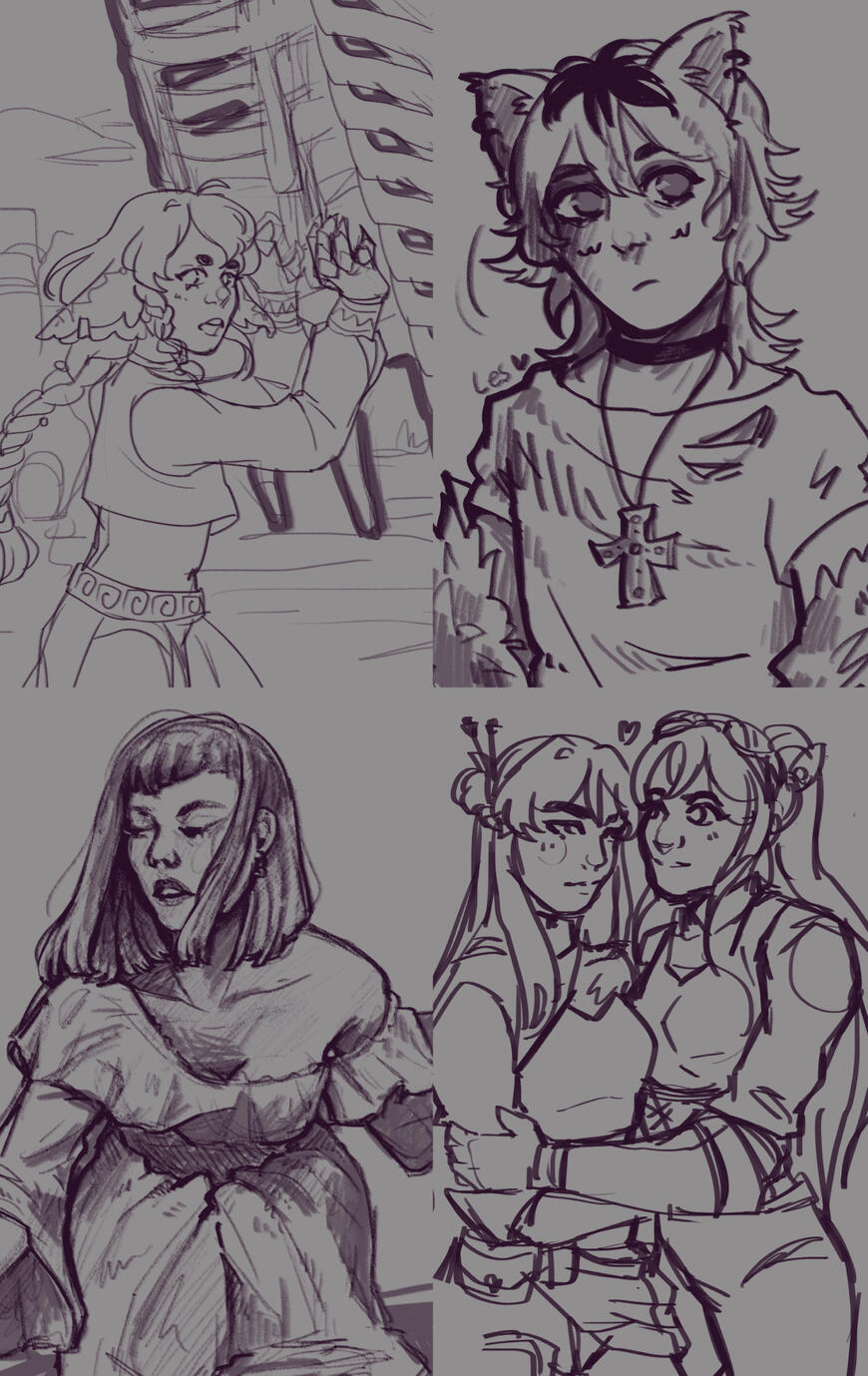 ❥The process is divided into 3 stages: sketch ➔ line art ➔ shading.